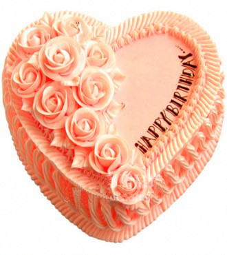 8寸粉色心形鲜奶蛋糕,鲜奶玫瑰花点缀,Happy birthday。