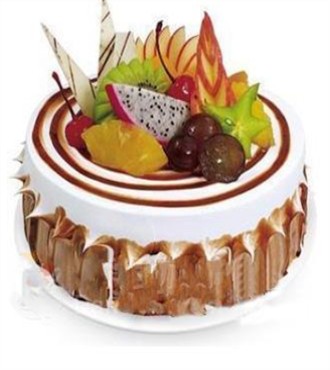 - 花材:8寸鲜奶水果蛋糕,巧克力围边