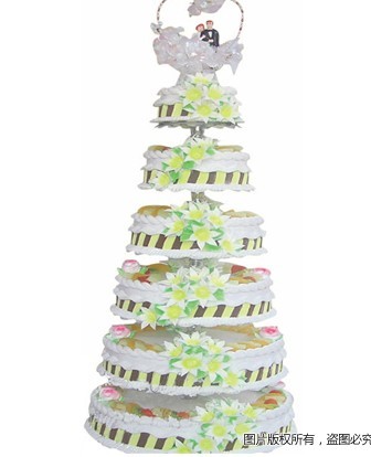 - 包装:六层带支架蛋糕,上下两层的尺寸相差最少2英寸。如:8寸至少叠10寸,价格按上述价格各层的价格之和计算,标价按照第二层的尺寸。