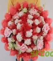 花材:10只高10CM的粉色抱心hello kitty ,旁边是6朵高档布艺玫瑰