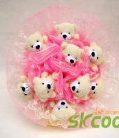 花材:9只高8CM左右的韩国进口白色泰迪熊