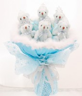 花材:6只皇冠关节熊,花束高35CM直径35CM