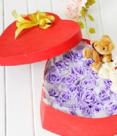 花材:一对5英寸关节熊,21朵高仿真紫玫瑰