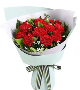 18只红色康乃馨,黄英、满天星搭配