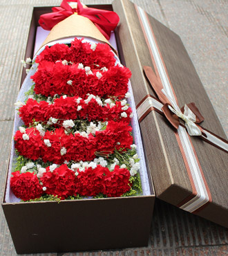 33枝红色康乃馨,栀子叶、满天星搭配