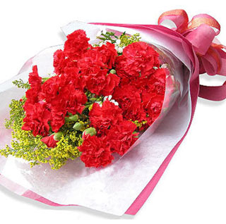 - 包装:深红色皱纹纸包装,内衬白色绵纸。包装成单面花束,红色锻带打结 。