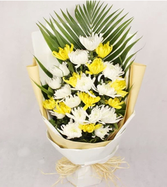 花材:15支白菊,黄莺丰满搭配。(需要提前2天预定)