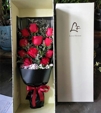 19支红玫瑰,黄莺(或者叶上黄金)丰满搭配。