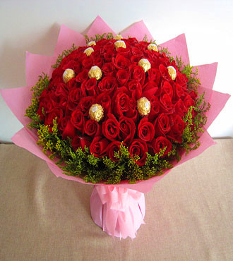 - 包装:内层白色纱网,外层粉色白牛皮纸,红粉双色缎带花结