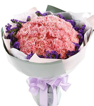 花材:33支粉色康乃馨,外围石竹梅搭配(特殊配材,如无货用时令配材搭配)
